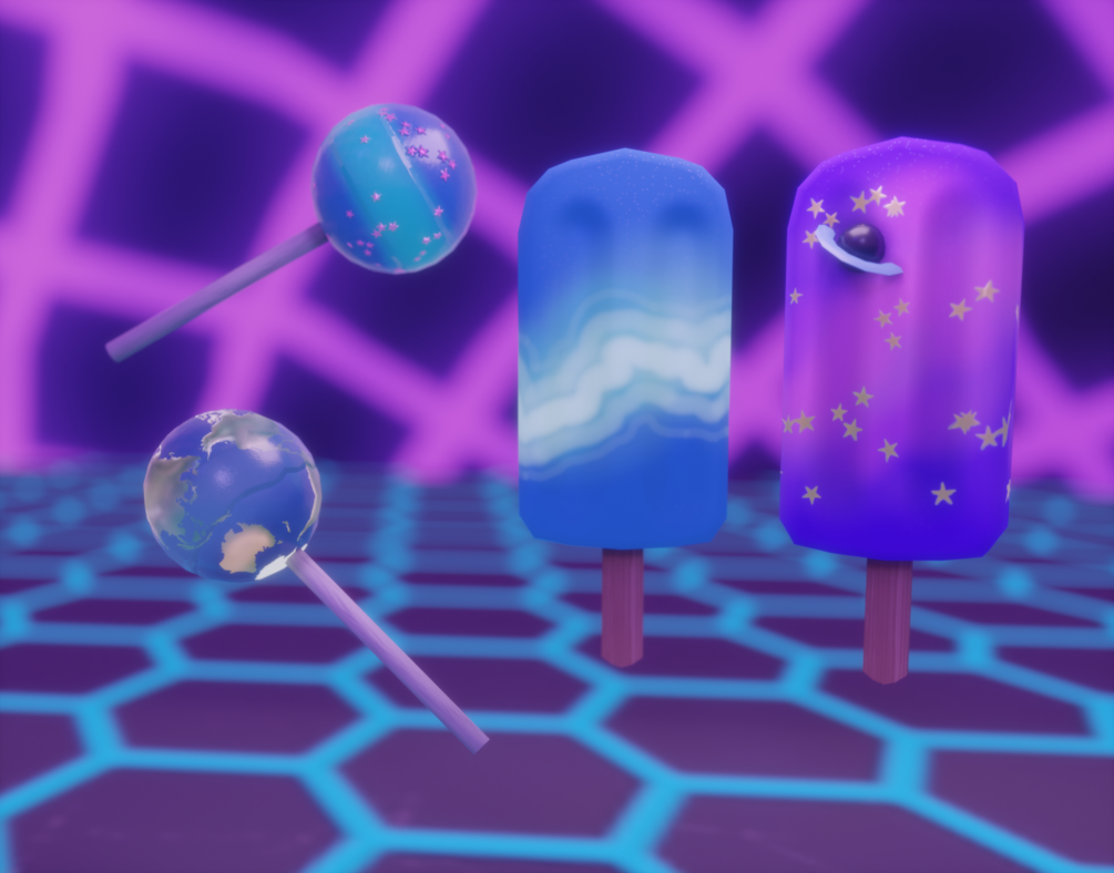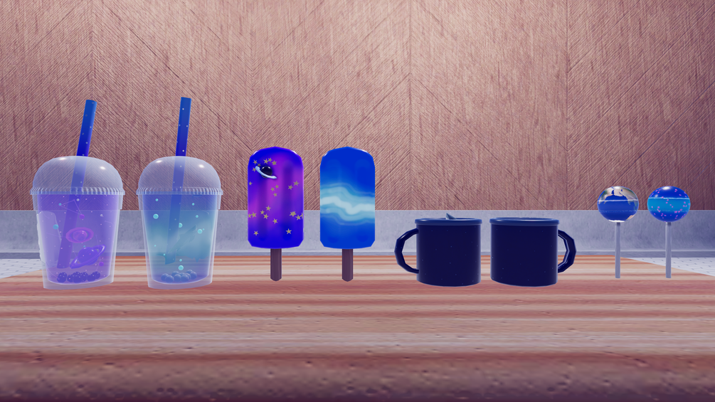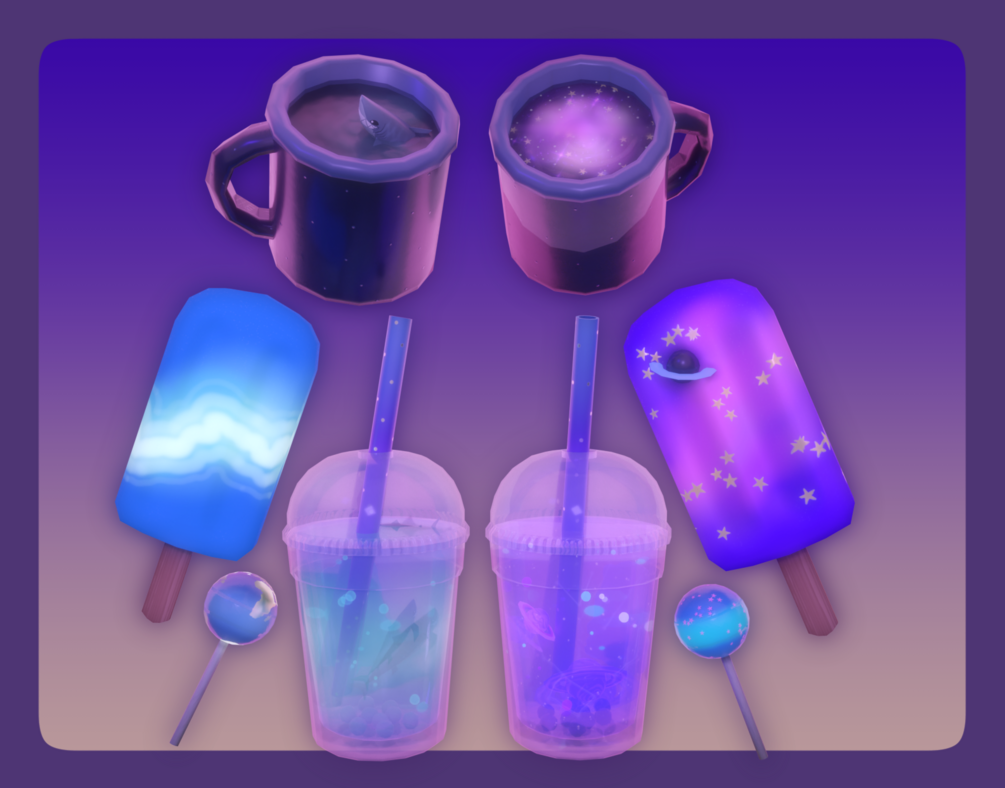 Space and Sea-themed snackies (Rigged Boba, Coffee/Tea, Gallipop, and Icepop), Unity Package, Textures, .FBX, Blender How-To Thingy,