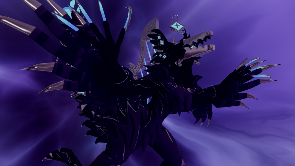 *Most of this model is mirrored. This is because there is just SO MUCH going on and it'd just have way too many UVs if not, so be aware! Also it will not have blendshapes to talk, rather you should either use the Jaw Bone or nothing! This IS meant to be this way btw, to add to the ominous vibe.