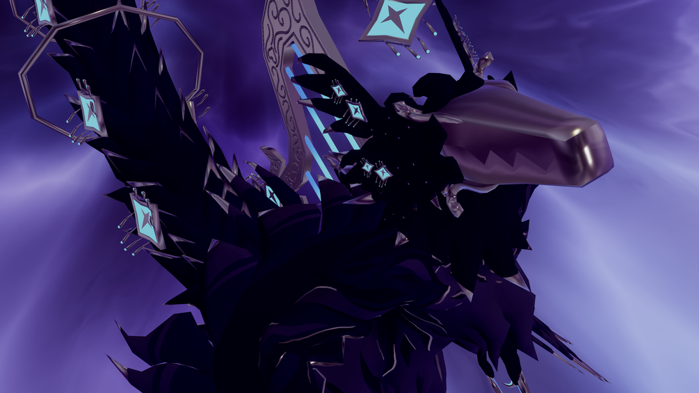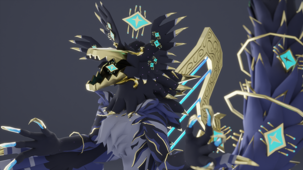 To clarify, it was NOT based on anything specific aside for dinosaurs, biblically accurate angels, harps (which is the instrument I play!), knights, and love as well as dreamy things! This is a colour scheme I've used on a few of my personal models/textures and I'd love to share it! I love these colours so much and would love to put them into more of my dreamy or cosmic models! There may be some armour I will make for it down the road as well!