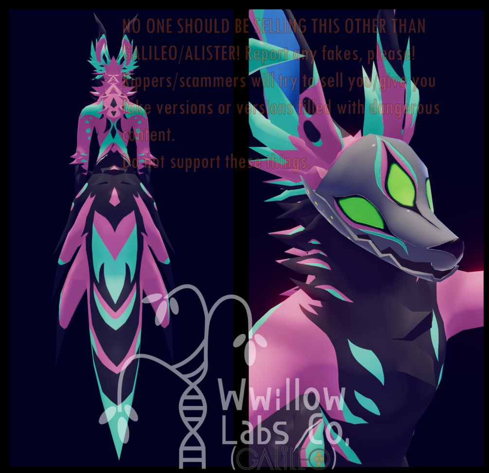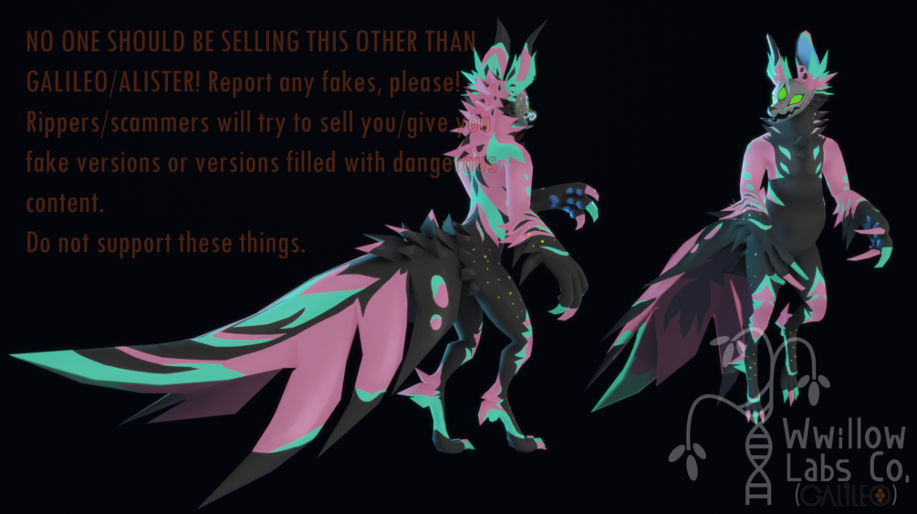 **Remember that buying from non-legitimate sites/ripper sites will probably give you a virus or a poorly put-together version of my models since rippers have no idea how to use any creative things like Unity, Blender, Substance, etc./plus they're thieves obviously! The only shoppe sites that my models are sold on should be: GUMROAD and BOOTH, and only sold by myself, Galileo/Alister/Wwillow Labs Co.! Please report and delete any non-legit versions. It's best to ask me directly if something is legit, and my only public socials are: Twitter (and Discord for friends!)!